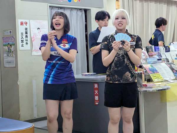 みさきPは両手投げ、ななみんPは右投げで、二人同時8本以上チャレンジ。