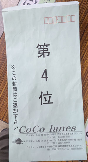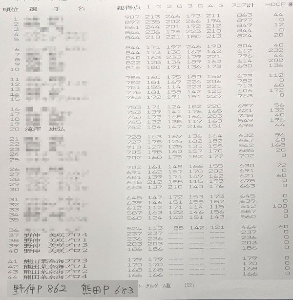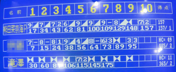 右レーンタップしてその後飛ばしにいったのが裏目に出てぱっかーん✕2。最後2番ピンを外す凡ミスで失速。