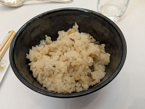 炊き込みご飯。お吸い物とか椀物欲しかったな~。