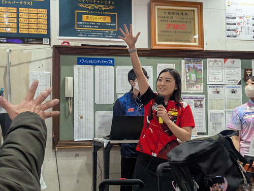 一美P176ピン、あたし186ピンで10ピン差で勝たせてもらいました。