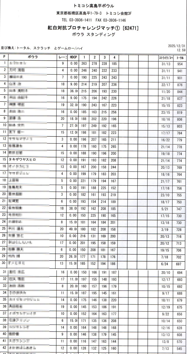 チャレンジ第215戦、そして今年の投げ納めは昨日に続いてトミコシ高島平さんでの紅白対抗プロチャレンジマッチです。
