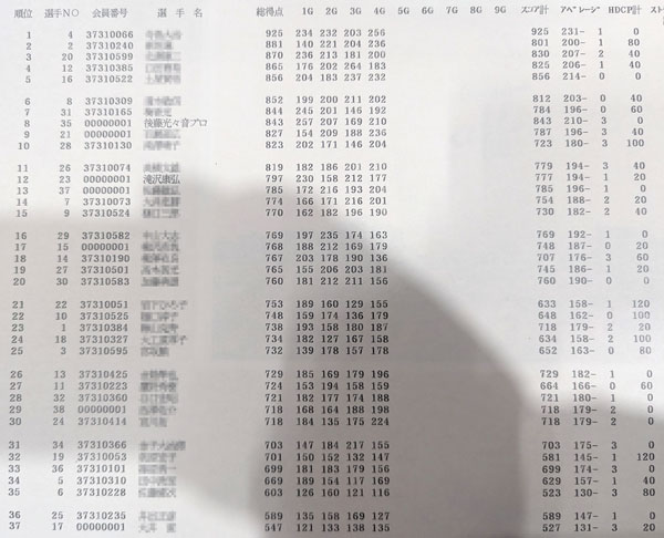 5連発からのぱっかーんありましたが、佐久にしてはいいスタート。でも、いつも変化してきてから急降下するんだけどね。M瀬プロは右レーンがどうしても合わず、らしくないスコア。でもまぁプロですから、あっという間に合わせてくれるでしょう。