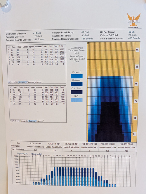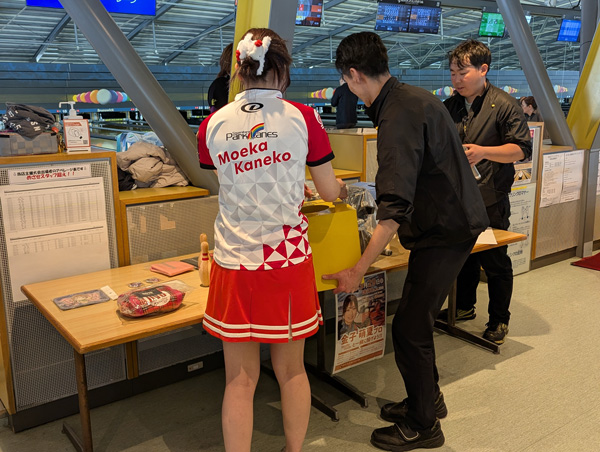 4人のうち両手投げ2人いて全く違うラインで遅くて難儀してるようす。あたしは今年から投げ方変えて回転とか落としているので、ボールにオイルも付いてくるし、そんなにいうほど遅いとは感じず、まぁ日頃の篠ノ井はもっとカラカラだからね。