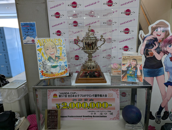 レーン抽選、19-20番レーン。ライバル(?)の小学生君と3人打ち。プロ2人とも入るラッキーボックスで右レーン故障で入ってないので早く終わりそう?